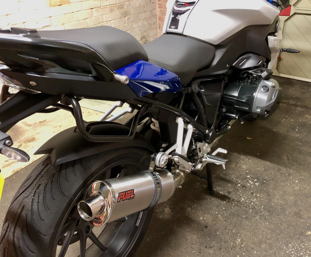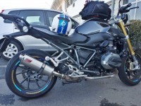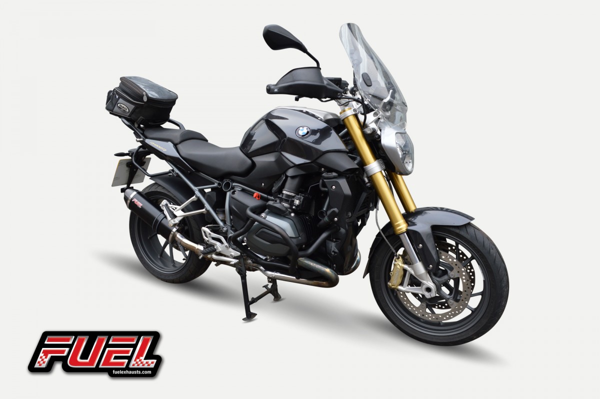 BMW R1200R LC 2016 - Diablo Black Stainless Oval Mini Exhaust with Black Bracket